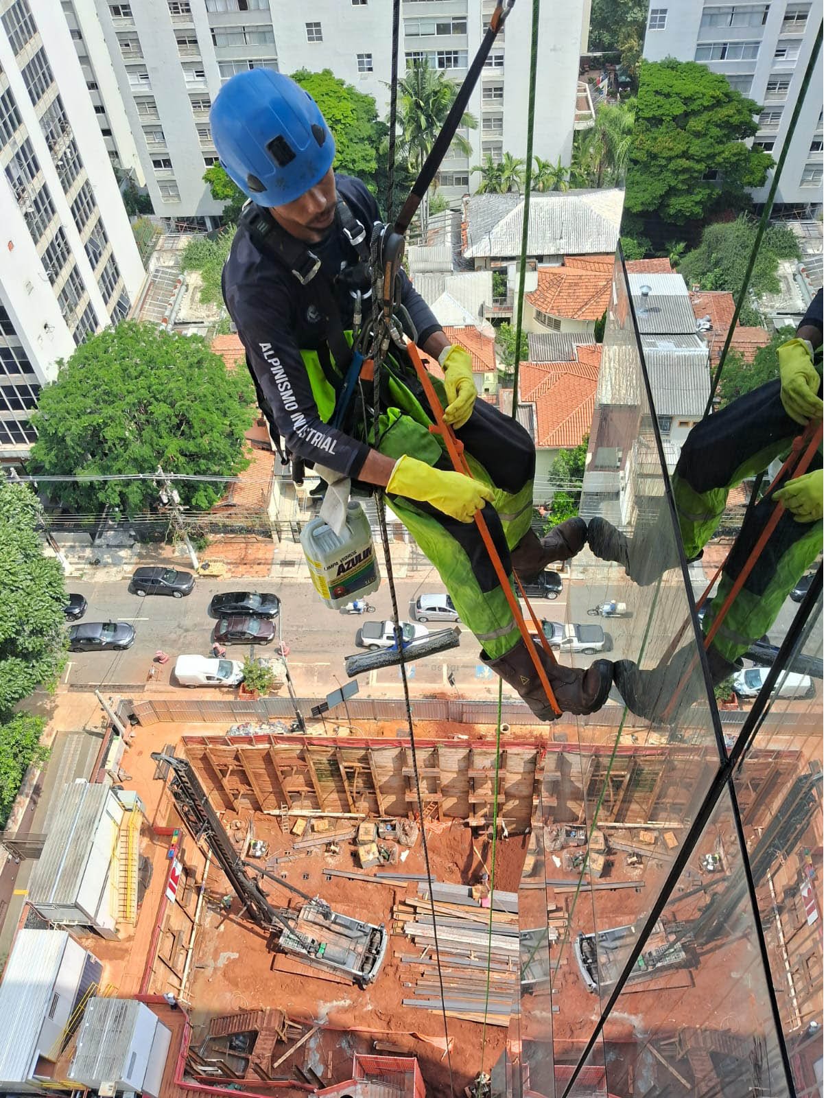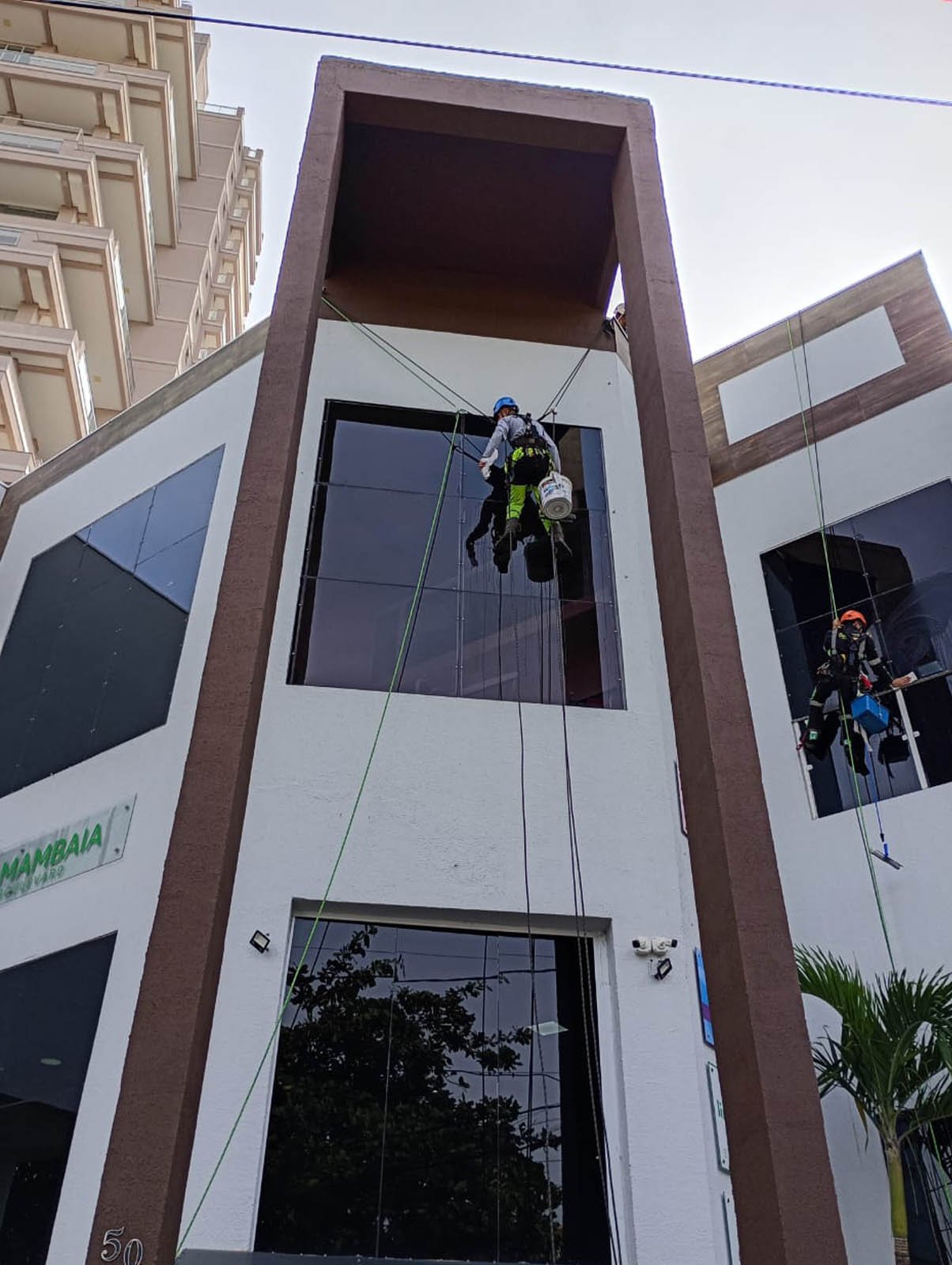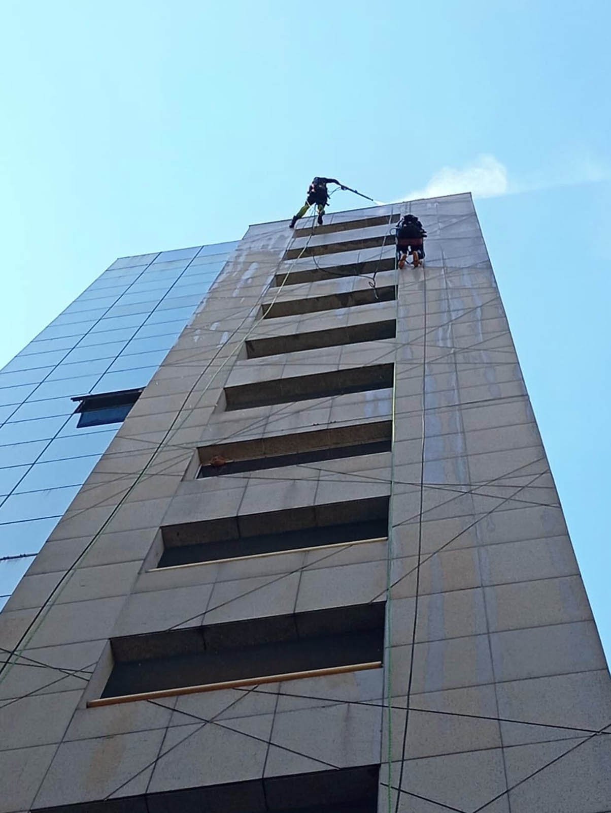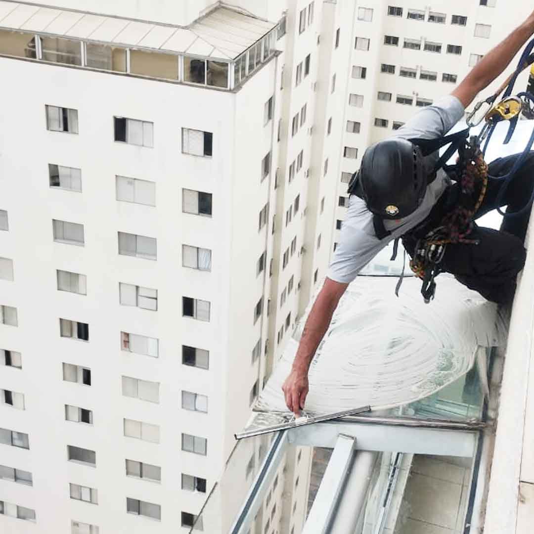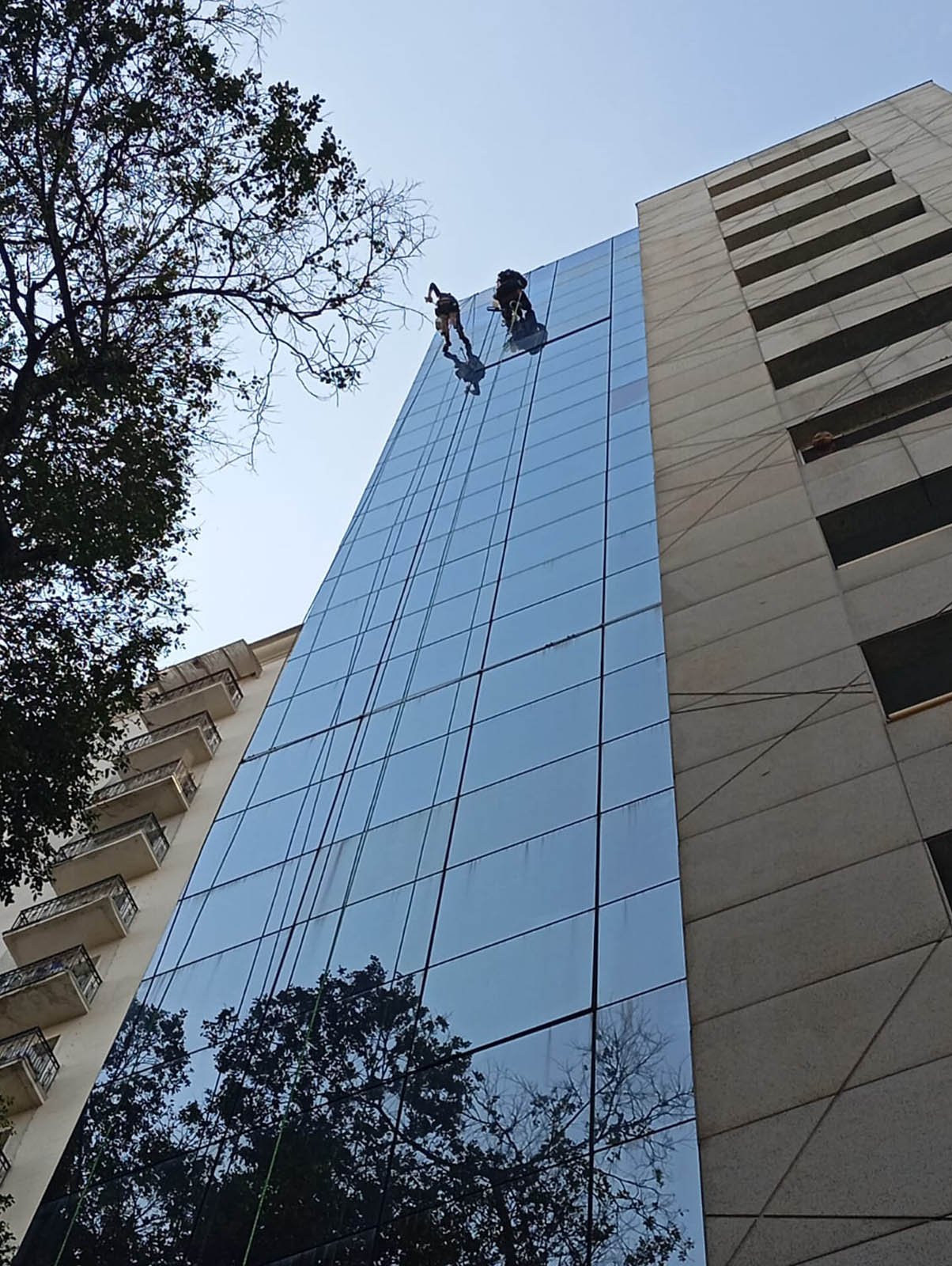 - Lavagem de fachada e limpeza técnica de vidros em qualquer altura;