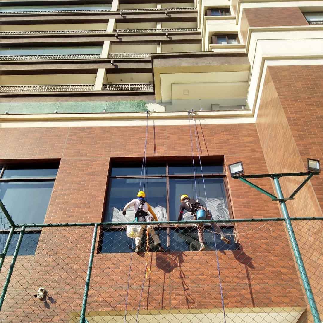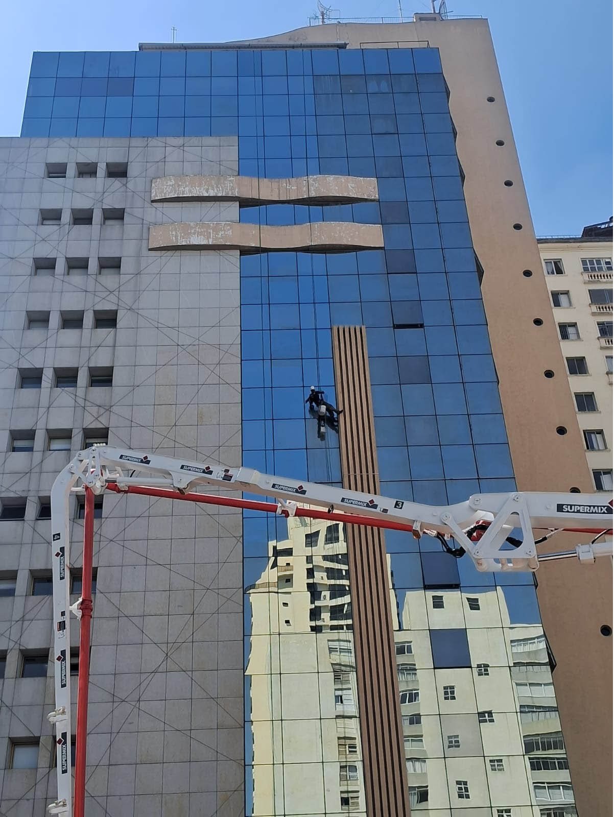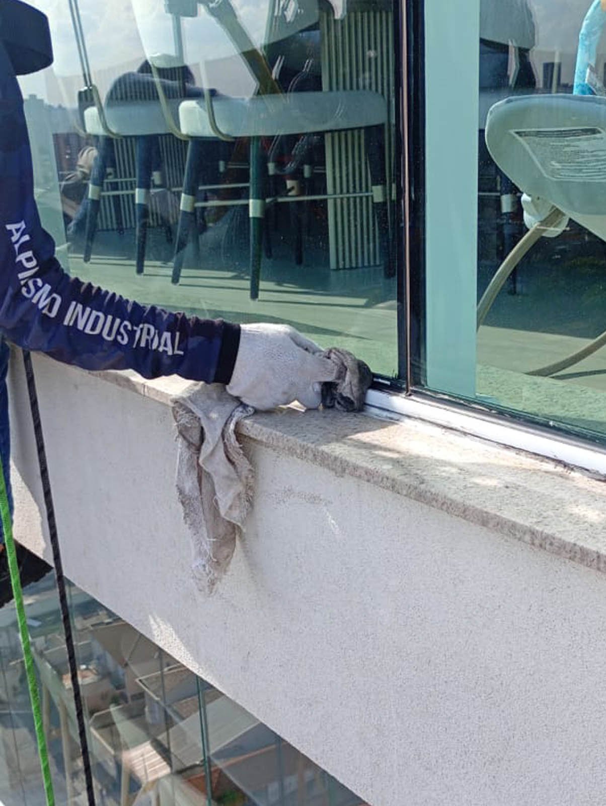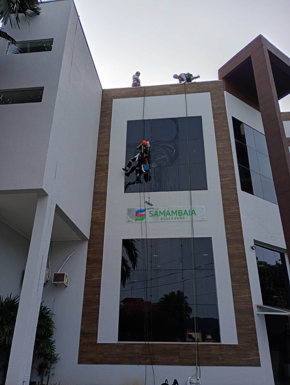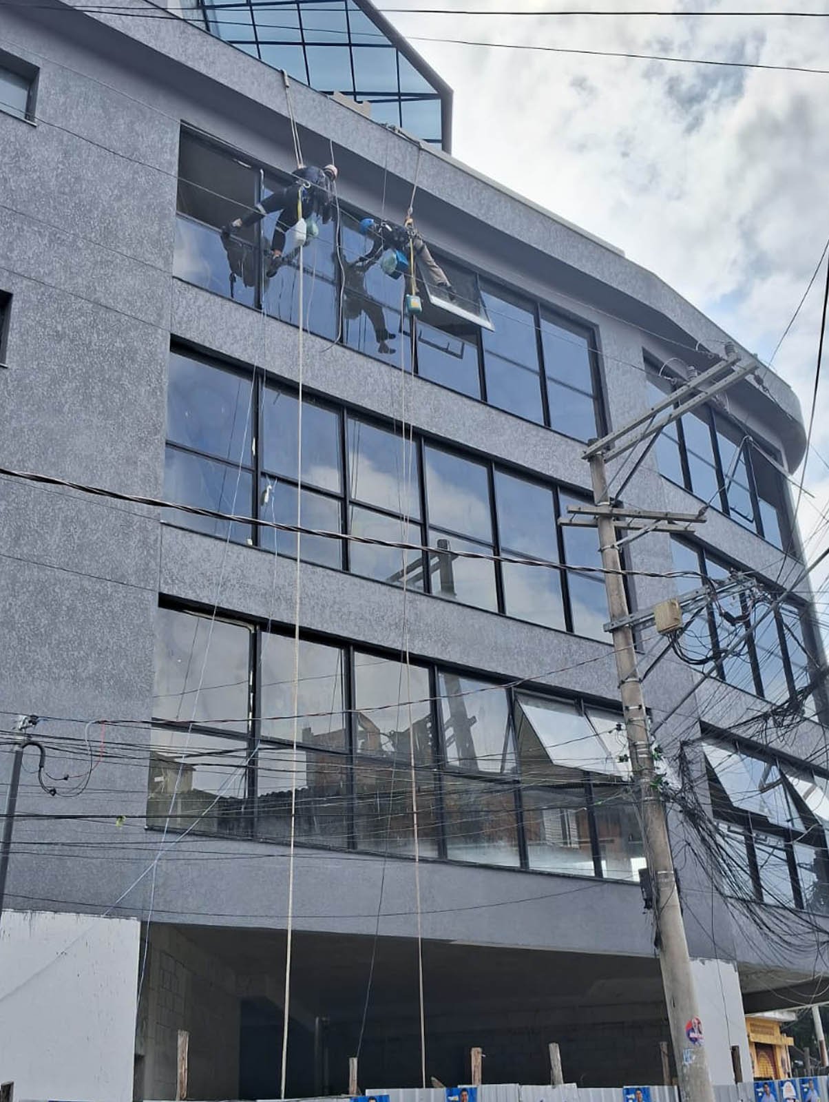 - Lavagem de fachada e limpeza técnica de vidros em qualquer altura;