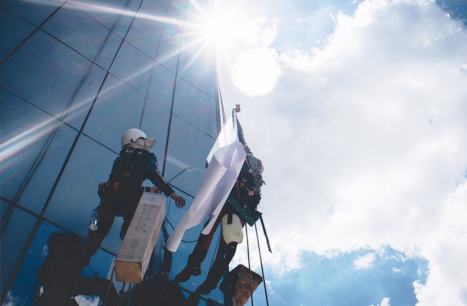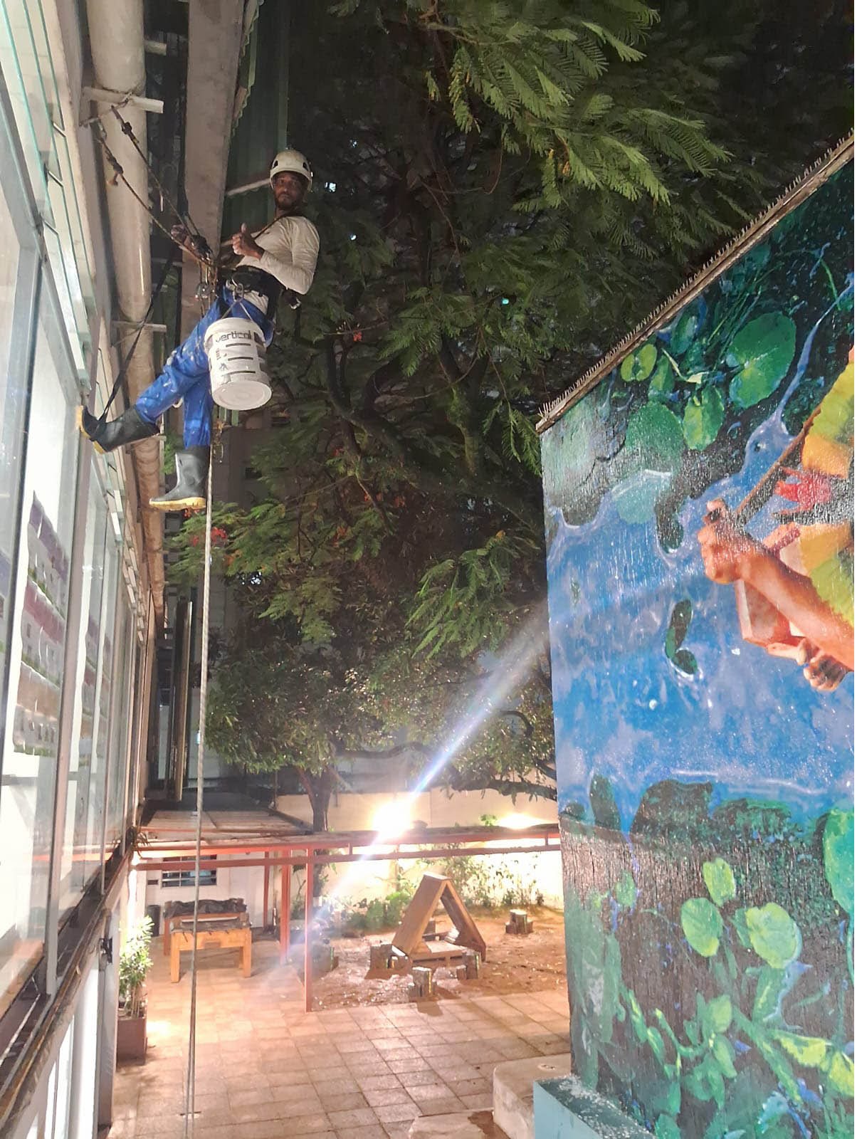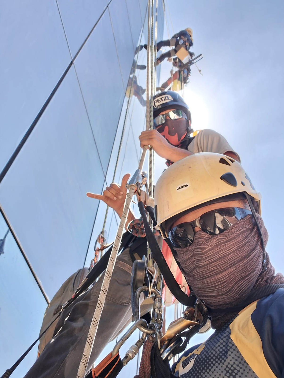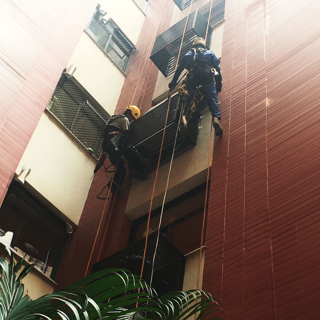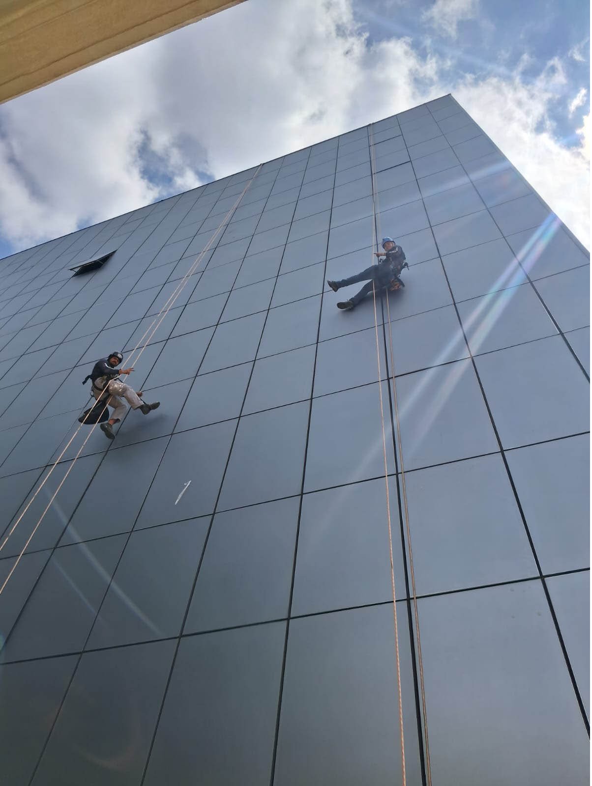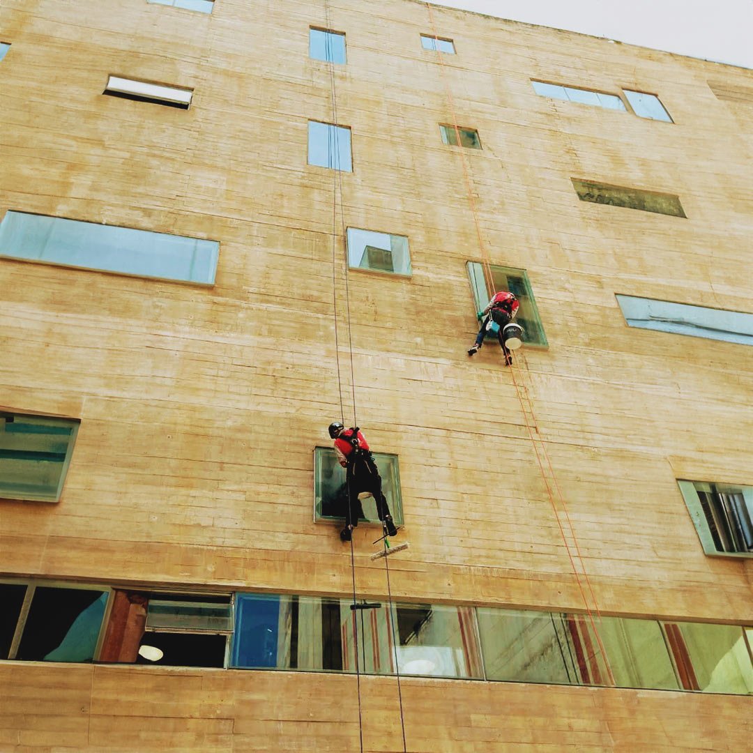 - Lavagem de fachada e limpeza técnica de vidros em qualquer altura;
